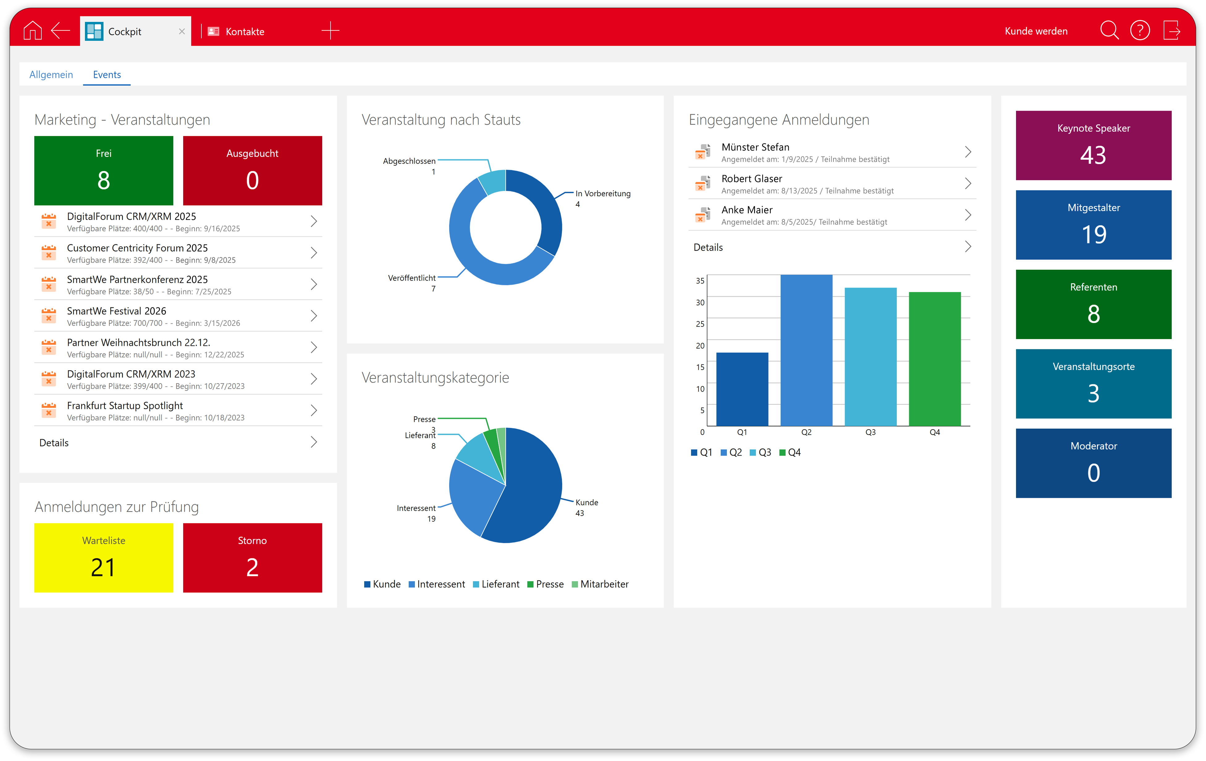 City CRM ermöglicht eine effiziente Planung und Organisation von Veranstaltungen, von der persönlichen Einladung über einen automatisierten Anmeldeprozess bis zur Durchführung.